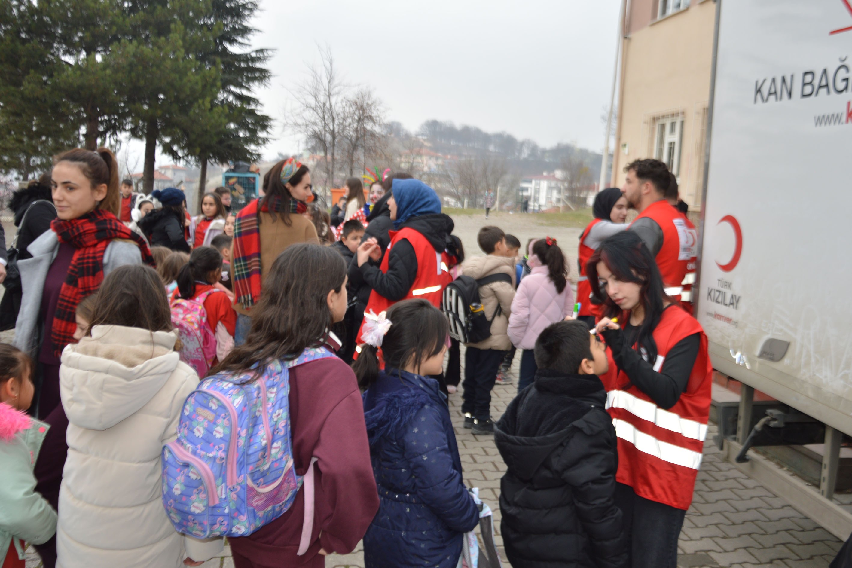 Faaliyette Genç Kızılay gönüllüleri tarafından öğrencilere yönelik yüz boyama, palyaço etkinliği de düzenlendi. Kan bağışında bulunan veli ve gönüllülere çeşitli hediyeler verildi.