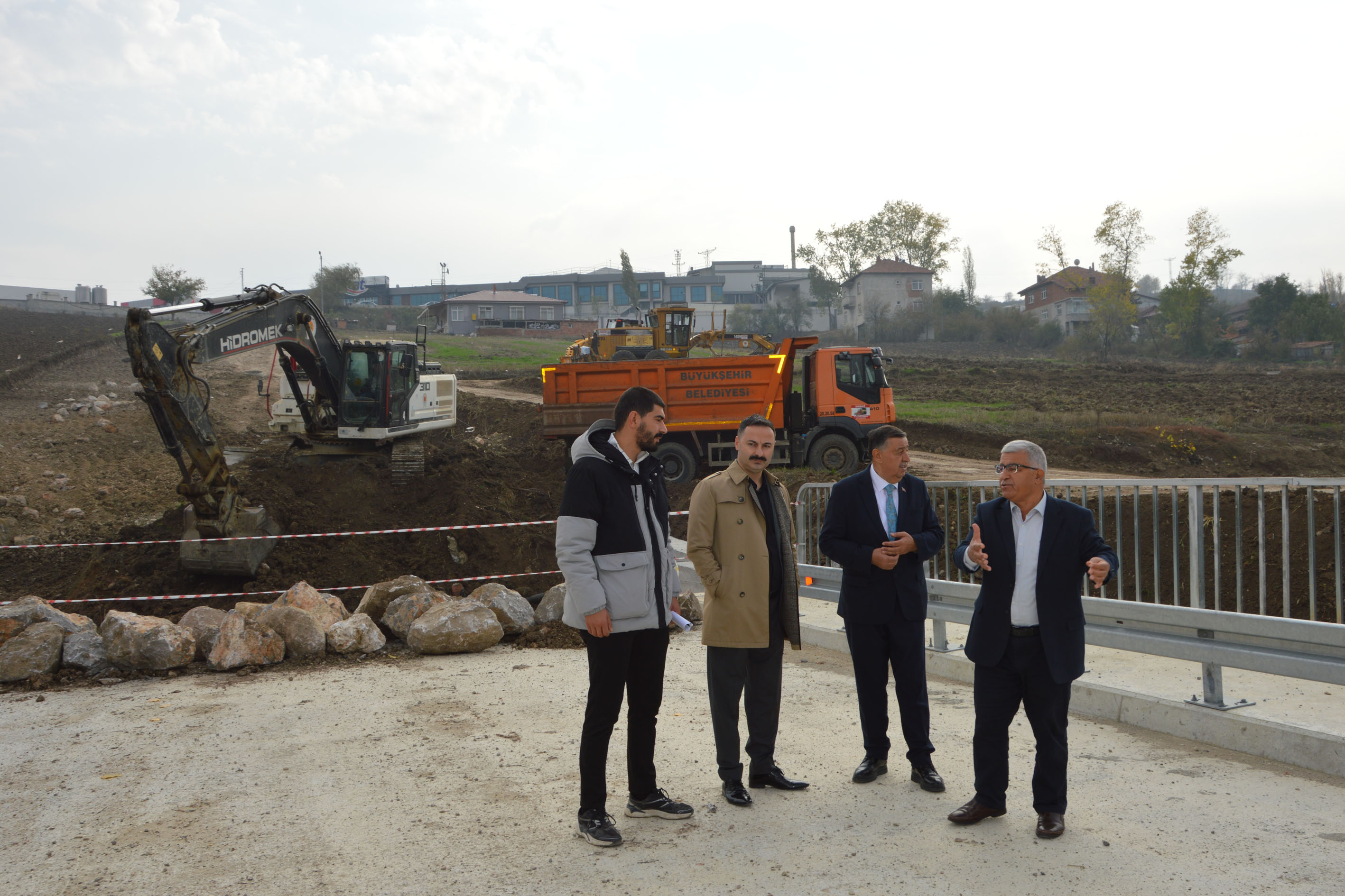 Havza’da ulaşımı rahatlatacak önemli projeler yerinde incelendi. Kaymakam Mustafa Ayvat ve Belediye Başkanı Murat İkiz, yapımı tamamlanan sanayi köprüsü ile Samsun Büyükşehir Belediyesi tarafından sürdürülen bağlantı yolu çalışmalarını yerinde görerek, Büyükşehir Belediyesi Yol Yapım Daire Şube Şefi Semih Deniz’den bilgi aldı.