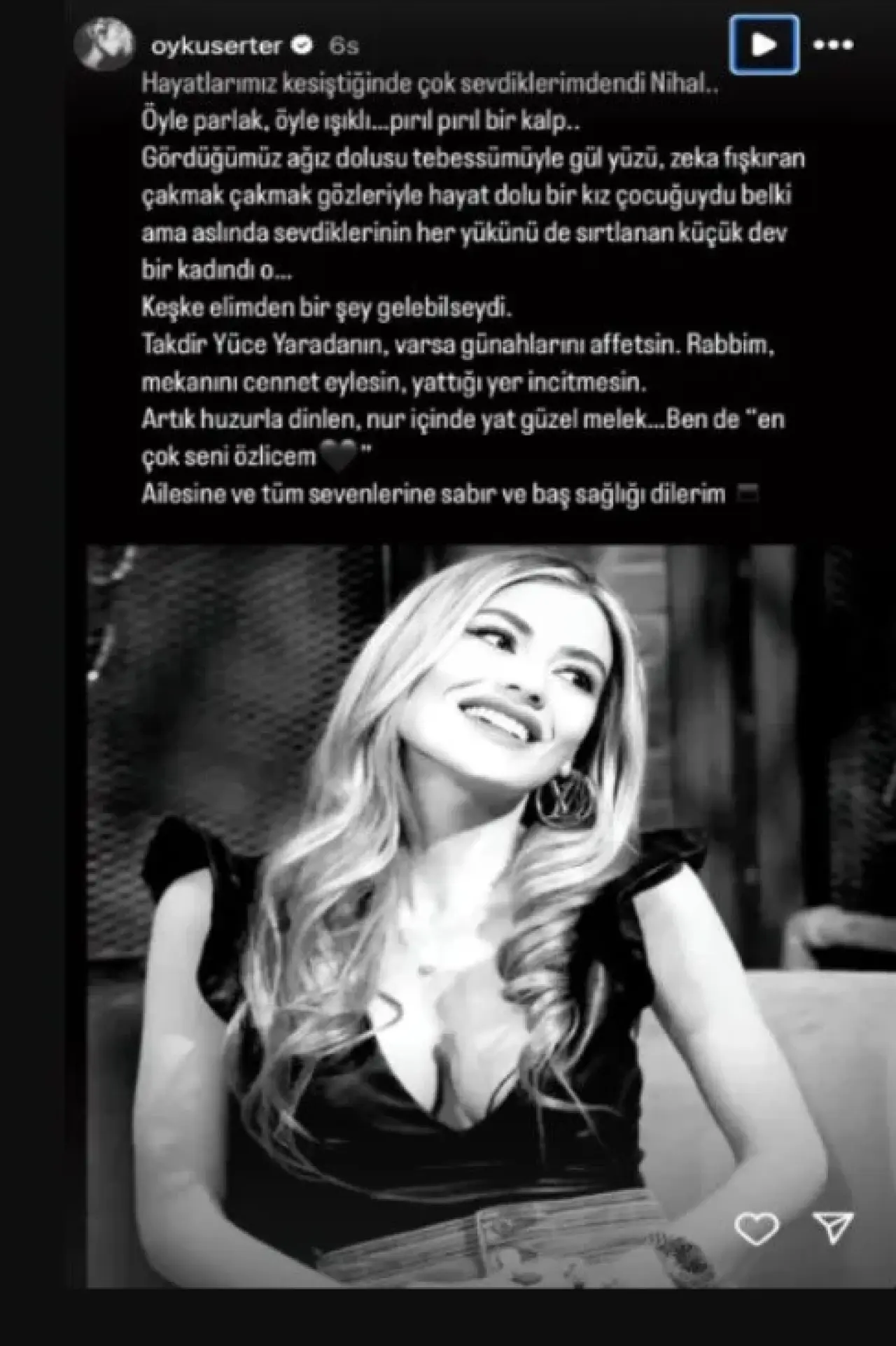 Nihal Candan ile "İşte Benim Stilim" adlı yarışma programında birlikte çalışan ve programın sunuculuğunu yapan Öykü Serter, genç ismin ardından duygusal bir mesaj yayımladı. Serter, sosyal medya hesabından yaptığı paylaşımda şu ifadelere yer verdi: