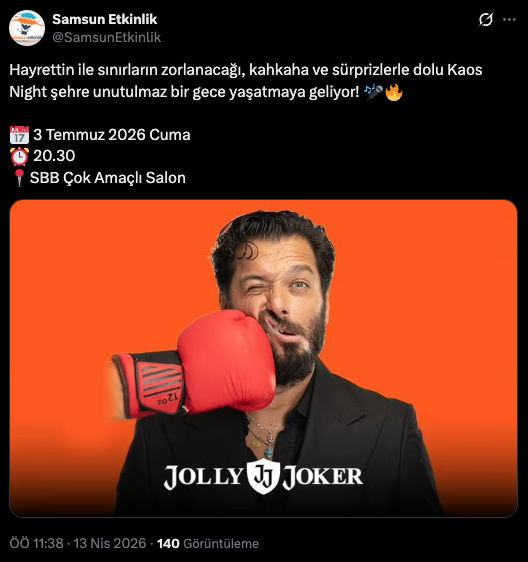 Samsun, yaz aylarında eğlence dolu bir etkinliğe ev sahipliği yapmaya hazırlanıyor. Hayrettin’in sahne alacağı “Kaos Night” gösterisi, izleyicilere sürprizlerle dolu bir gece yaşatacak.
