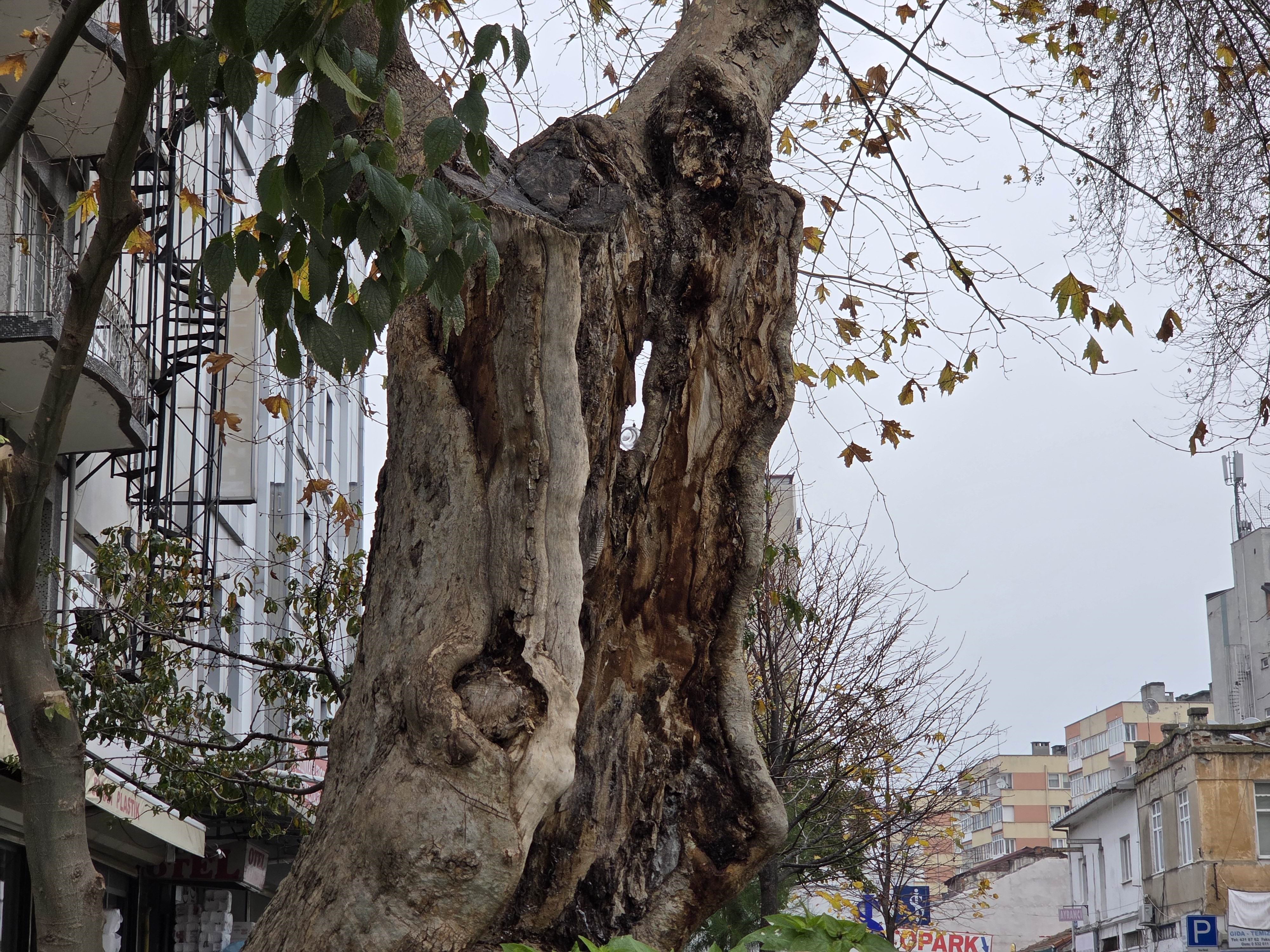 Edinilen bilgilere göre, çınar ağacının gövdesi bir süre önce yanarak içten tamamen boşaldı. Buna rağmen yalnızca dış kabuğu sayesinde ayakta kalan ağaç, üst dallarındaki yeşil yapraklarıyla yaşamını sürdürmeyi başardı.