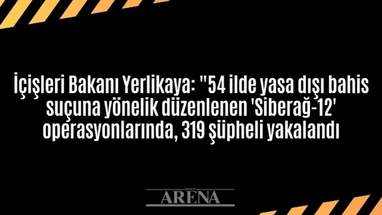 Bakan Yerlikaya sosyal medya hesabından yaptığı açıklamada, 54 ilde yasa dışı bahis suçuna yönelik düzenlenen “Siberağ-12" operasyonlarında 319 şüphelinin yakalandığını belirterek, "Yasa dışı bahis huzurumuzu bozan bir tuzaktır. Hem kişilerin hayatını hem de toplumsal yapıyı zedeleyerek ekonomik, ahlaki ve sosyal problemlere yol açan yasa dışı bahisle mücadelemiz aralıksız devam ediyor" ifadesini kullandı.