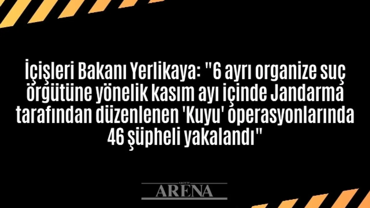 İçişleri Bakanı Ali Yerlikaya, 6 ayrı organize suç örgütüne yönelik kasım ayı içinde Jandarma tarafından düzenlenen “Kuyu” operasyonlarında 46 şüphelinin yakalandığını açıkladı
