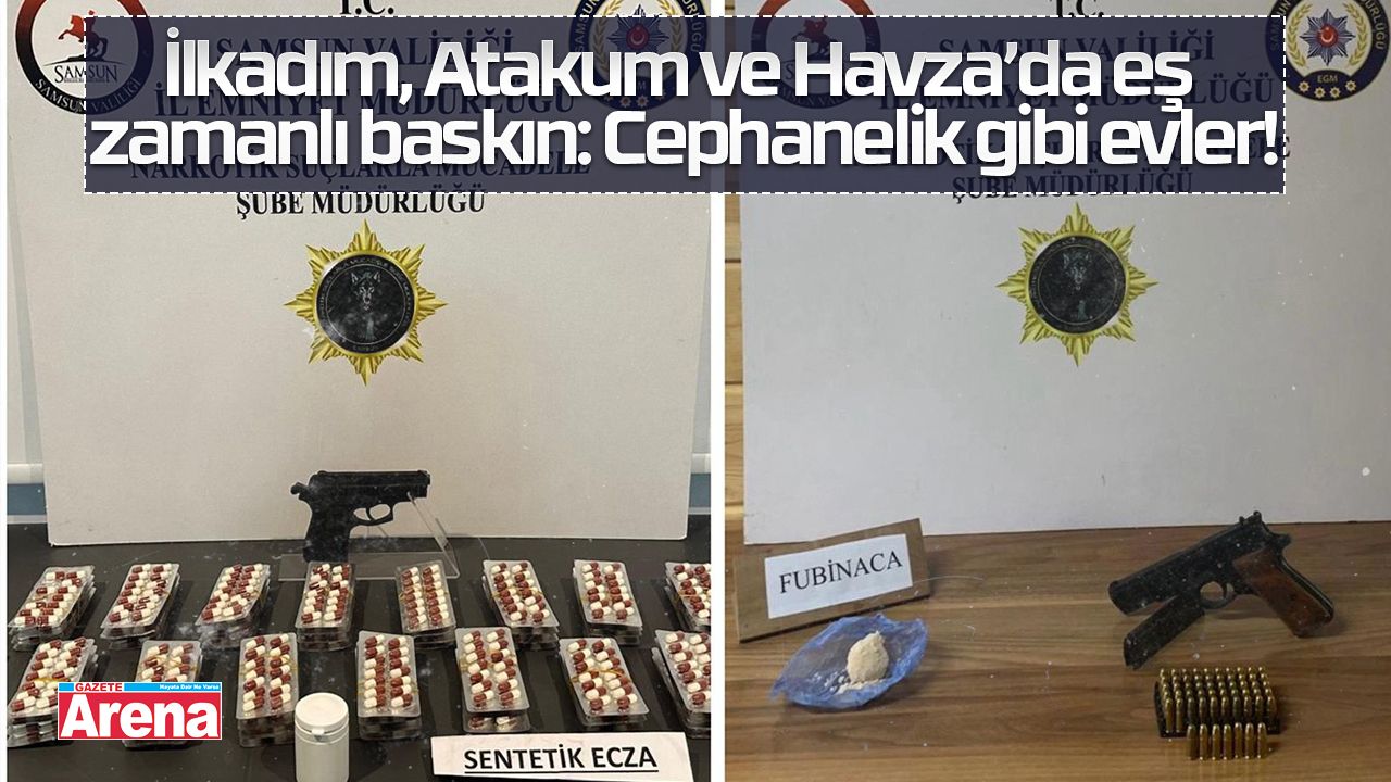 İlkadım, Atakum ve Havza ilçelerinde eş zamanlı olarak yapılan operasyonlarda, 10 şüpheliye ait üst, araç ve ikamet adreslerinde aramalar gerçekleştirildi.