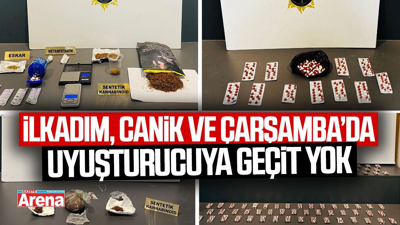 Samsun İl Emniyet Müdürlüğü Narkotik Suçlarla Mücadele Şube Müdürlüğü ekiplerince, uyuşturucu madde ticareti ve kullanımının önlenmesine yönelik yürütülen çalışmalar kapsamında İlkadım, Canik ve Çarşamba ilçelerinde operasyon gerçekleştirildi.