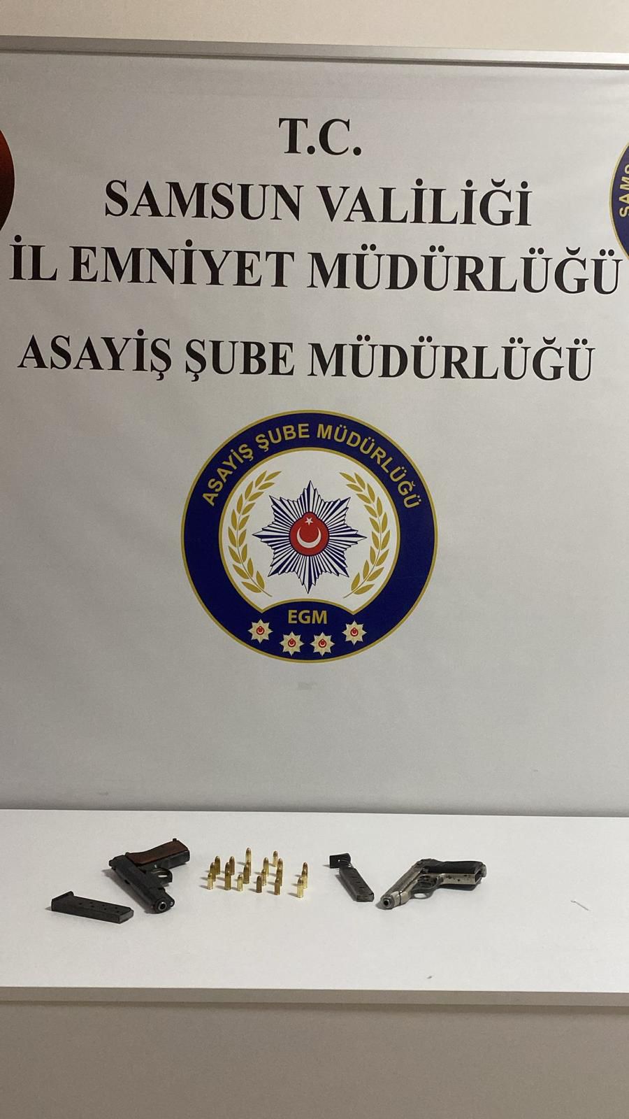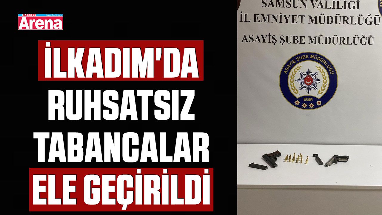 Samsun’un İlkadım ilçesinde, Samsun İl Emniyet Müdürlüğü Asayiş Şube Müdürlüğü Güven Timleri tarafından gerçekleştirilen denetimlerde, Y.T.A. isimli şahıstan 2 adet ruhsatsız tabanca ele geçirildi.