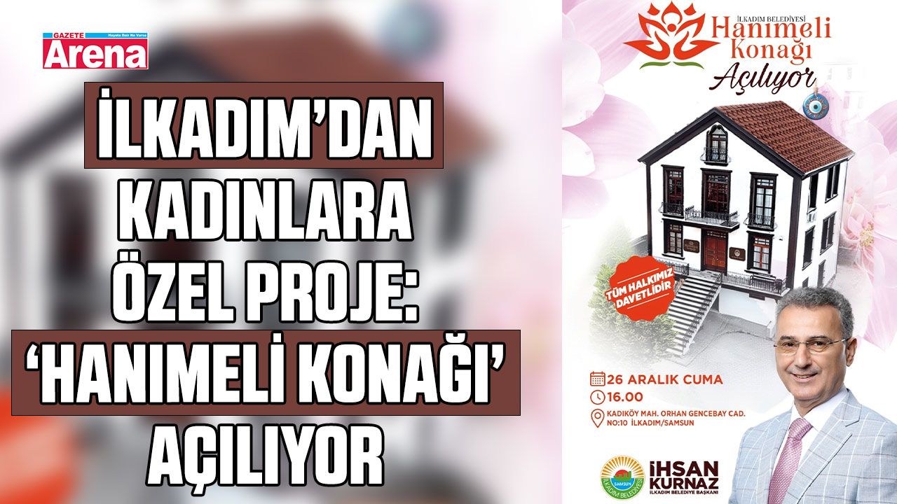 İlkadım Belediye Başkanı İhsan Kurnaz’ın projeleri arasında yer alan, kadınların gelişimine ve sosyalleşmesine büyük olanak sağlayan Hanımeli Konağı, 26 Aralık 2025 Cuma günü açılıyor. Kadıköy Mahallesi Orhan Gencebay Caddesi’nde yer alan ve İlkadım Belediyesi’nin sosyal belediyecilik anlamında önemli projelerinden biri olan Hanımeli Konağı, kadınların gözde mekânı olması hedefleniyor. İlkadım Belediye Başkanı İhsan Kurnaz, “Açılışımıza tüm halkımız davetlidir” ifadelerini kullandı.