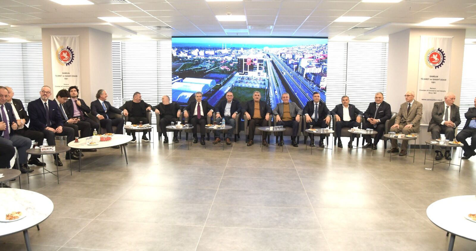 Samsun Ticaret ve Sanayi Odası’nda, Ramazan Bayramı dolayısıyla bayramlaşma töreni gerçekleştirildi. Bayramlaşma törenine önceki dönem Samsun Milletvekili Fuat Köktaş, MHP Samsun İl Başkanı Burhan Mucur, Uluslararası Un Sanayicileri ve Hububatçılar Birliği (IAOM) Avrasya Başkanı Dr. Eren Günhan Ulusoy, MÜSİAD Samsun Şube Başkanı Osman Öğüten, Samsun TSO Yönetim Kurulu Üyeleri, Meclis üyeleri ve çok sayıda iş insanı katıldı. Programa ev sahipliği yapan Samsun TSO Yönetim Kurulu Başkanı Salih Zeki Murzioğlu, davetlilerle yakından ilgilenerek bayramlarını tebrik etti.