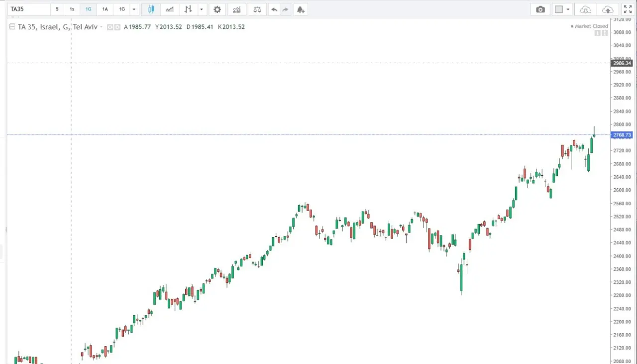 İsrail merkezli şirketler, Tel Aviv Borsası’nda işlem görmekte. TA 35 Endeksi, İsrail’in en büyük firmalarının hisselerini bünyesinde bulunduruyor. Söz konusu endeksin grafiği; kısa, orta ve uzun vadeli olarak incelendiğinde, “düzenli” olarak yükseldiği görülmekte. Endekste ara düşüşler olsa da, bunun “düzeltme sürecinden” öteye gitmediği dikkat çekiyor.