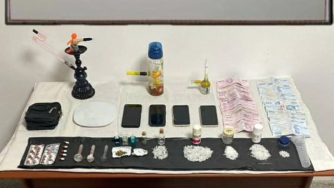 Arama köpeği Puslu'nun da katıldığı operasyonda 75 gr metamfetamin, 2 gr kubar esrar, 28 adet sentetik ecza hap, 5 adet uyuşturucu kullanma aparatı, hassas tartı, suçtan elde edilen 16 bin 35 TL nakit para ile 4 cep telefonu ele geçirildi.