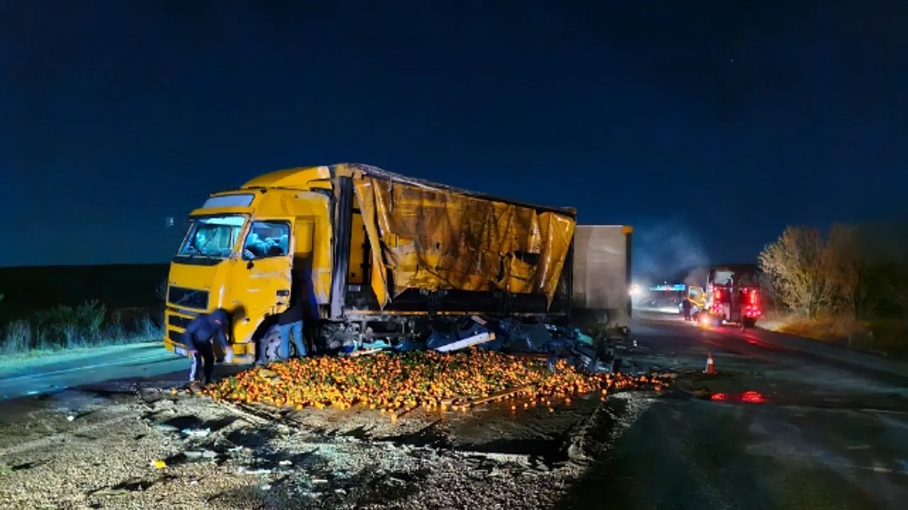 Çorum’un Alaca ilçesinde devrilen kamyondaki mandalinaların saçıldığı yol kısa süreliğine trafiğe kapandı. Sürücü kazadan yara almadan kurtuldu