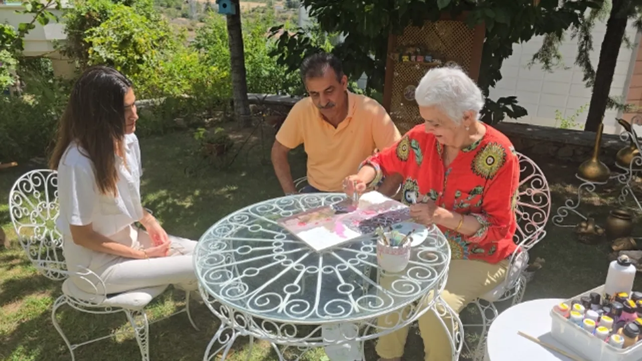 Hastalık sürecini üçüncü üniversite bitiriyormuş gibi düşündüğünü söyleyen Nimet Ayketin; “İnsan çalışma hayatı bittikten sonra emekliliğini doya doya yaşamak istiyor. 7 seneden sonra geçtiğimiz yıl bir teşhis kondu. Tam iyi emekliliğimi yaşıyorum diye sevinirken göğüs kanserine yakalandım. Tedaviye başladık. Çok şükür şu anda bitti. Yani ameliyat süreci, o tedavi süreçleri hepsi bitti. Teşhis konduğu zaman hiçbir zaman panik olmadım. Hatta eşimle doktora gittiğimizde siz hastasınız, tedavi almanız gerekiyor, kemoterapi almanız gerekiyor dedikleri zaman ben hemen şunu düşündüm. Ben onkoloji bölümünde okumak için üniversiteye başladım. İki üniversite mezunuyum. Bu üçüncü üniversitem diyerek kendimi buna hazırladım. Ben burada hocamın vereceği bu kemoterapi derslerini çok iyi bir şekilde vereceğim. Ameliyat olacağım. Ameliyatta projemi sunacağım. Tabii o süreçte saçlar da döküleceği için mezun olacağım. 16 seans oldu. Mezun olacağım. O başımıza taktığımız o boneyi kep olarak düşünüp fırlatıp atacağım dedim. Yani üniversiteymiş düşündüm. Eğitim hayatına başlamışım gibi düşünerek hastalığı ben bu şekilde adlandırdım. Arada saniyelerle ben hastayım dedim ama anında başka bir şeyle oyalandım. Kendimi müziğe verdim. O anda işe verdim. Bahçeye çıktım. Çiçekle, böcekle ilgilendim. Son zamanlarda da bir sergiye katılmıştım. Ben burada olmalıyım dedim. Ahşap boyama kursuna başladım. Doğada bulduğum her şeyden hem ilham alıyorum hem şifa alıyorum. Hem de bir şekilde onları geri dönüşümle kendi hayatıma bir dokunuş yapıyorum. Ben şifa şerbetini bu şekilde içiyorum” dedi.