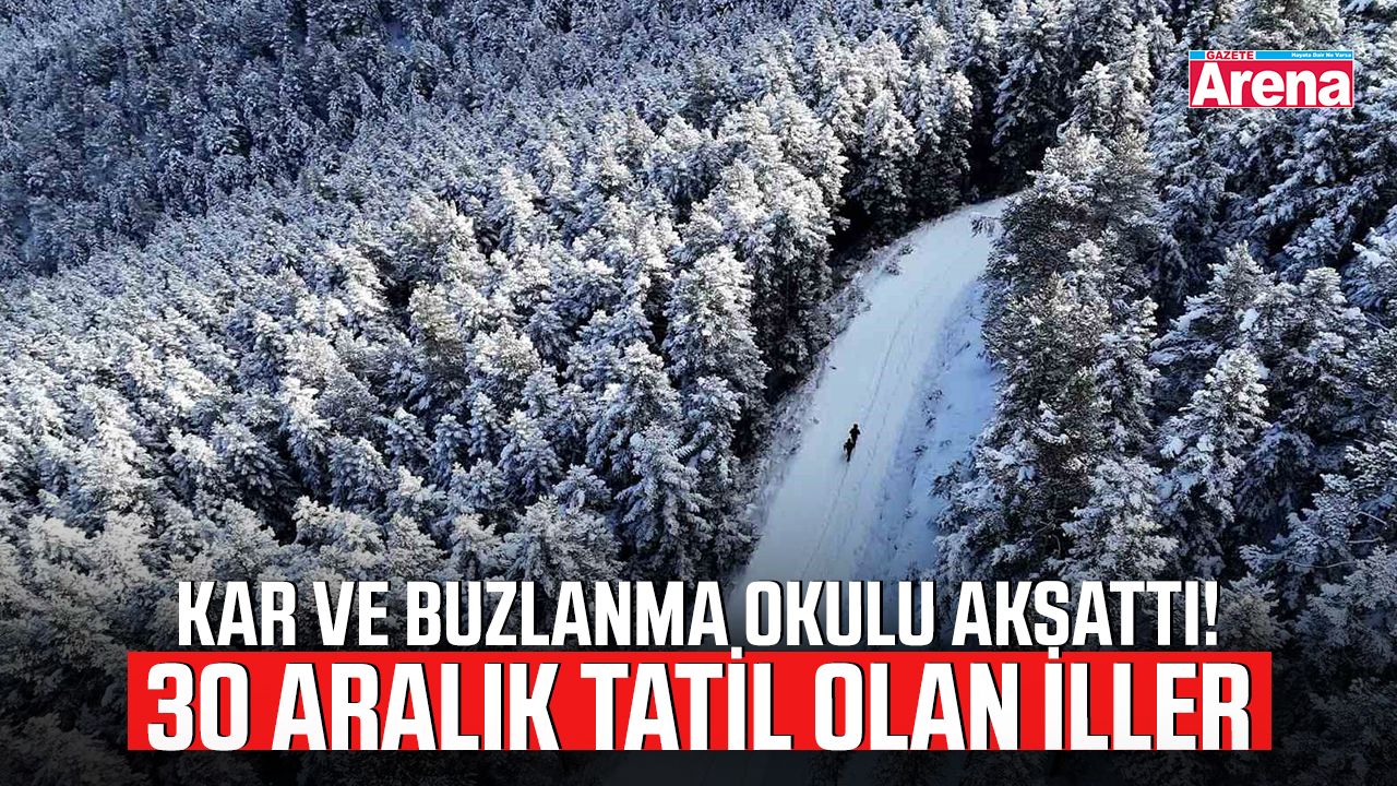 Valiliklerden yapılan resmi açıklamalara göre, 30 Aralık Salı günü il genelinde eğitime ara verilen iller şunlar oldu: Bolu, Diyarbakır, Mardin, Karabük, Siirt, Batman. Bu illerde resmi ve özel tüm eğitim kurumlarında eğitim-öğretime 1 gün süreyle ara verilirken; hamile, engelli ve kronik rahatsızlığı bulunan kamu personeli idari izinli sayıldı.
