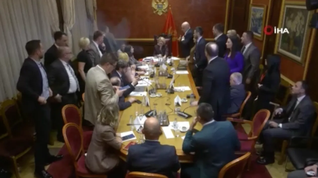 Karadağ parlamentosunun Anayasa Komisyonu oturumu sırasında Anayasa Mahkemesi hakimlerinin seçim sürecine ilişkin şiddetli tartışmaların yaşandığı sırada anayasanın çiğnendiğini ve ülkede “anayasal bir darbe girişimi” söz konusu olduğunu savunan muhalif milletvekilleri, salona sis bombası attı.