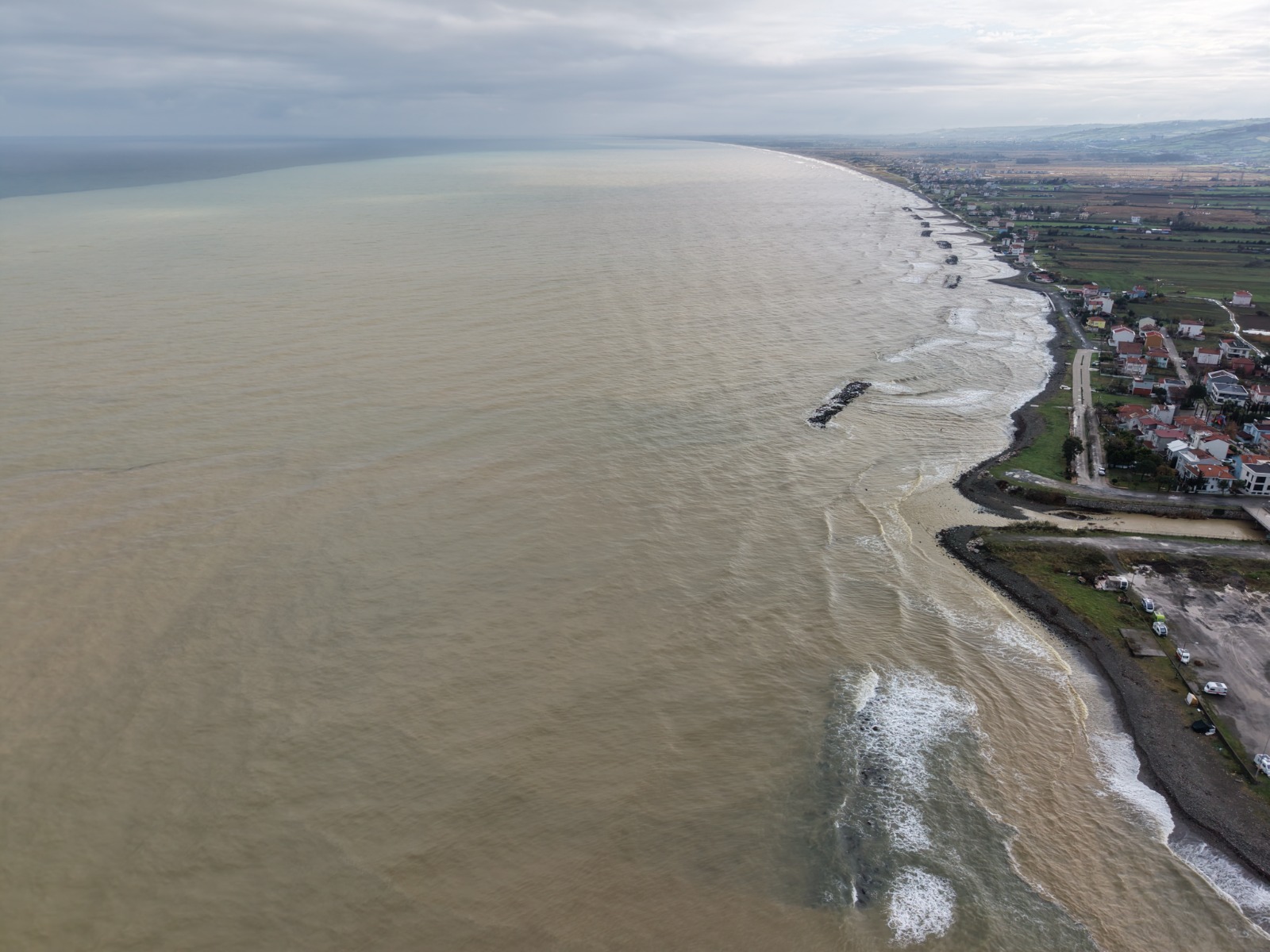 Samsun'da etkili olan yağışın ardından Karadeniz'in rengi kahverengiye dönüştü, derelerden denize çamurlu su taşındı.