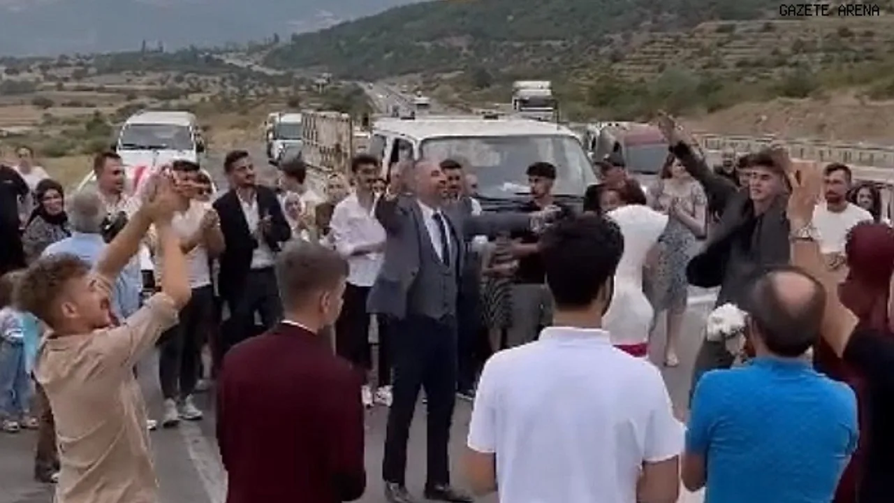 Yenidere köyünde düğünlerini yapan Yılmaz çifti, gelin alma konvoyunda Amasya-Taşova karayolu üzerinde bir park yerinde trafiği tehlikeye atmayacak şekilde doyasıya eğlendi. Ebru (22) ve Serhat (27) Yılmaz çifti, yakınlarıyla beraber köye varmadan karayolunda düğün eğlencesi yaptı.