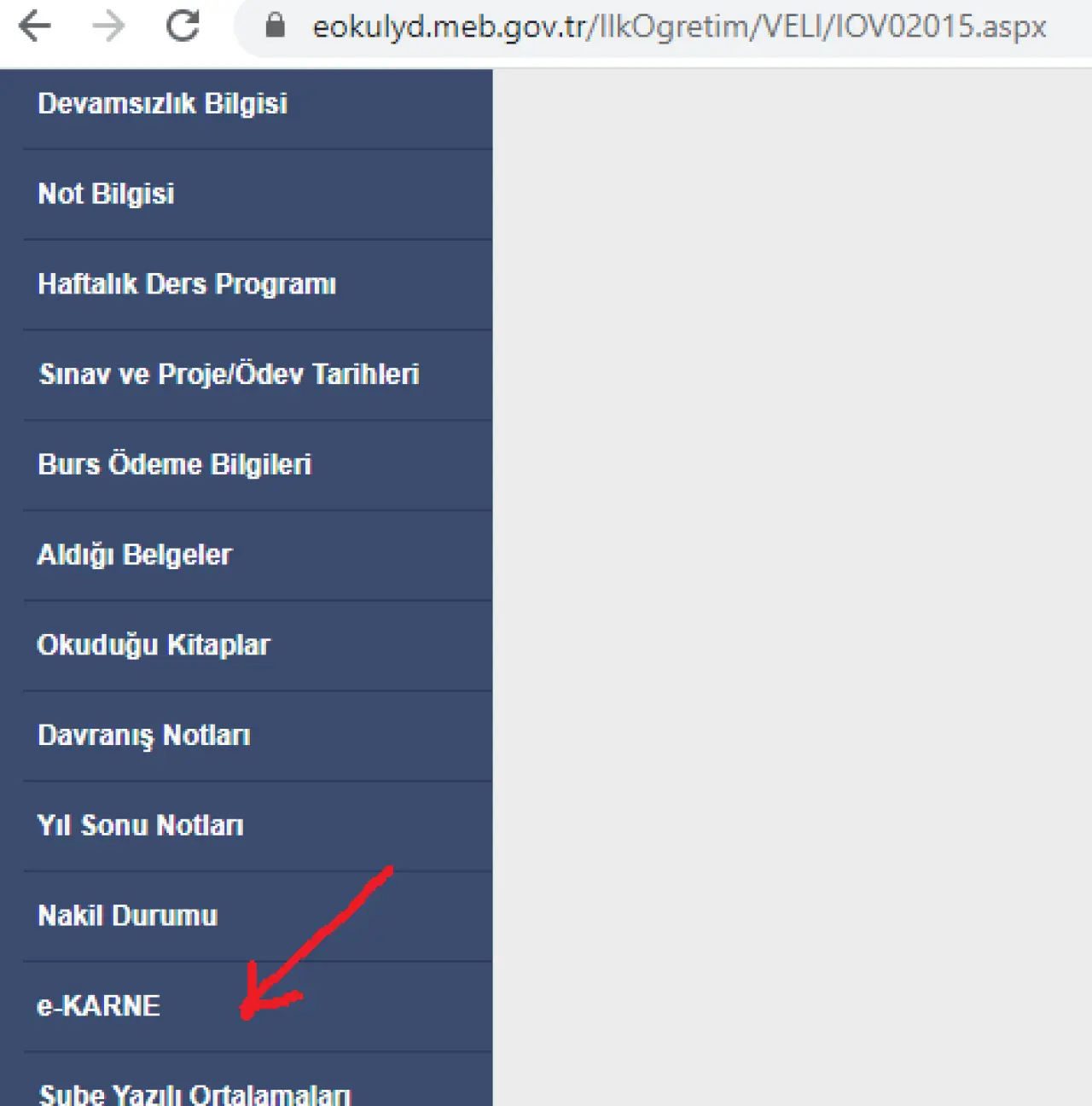 - e-Karne sekmesine girin: Sisteme başarılı giriş yaptıktan sonra karşınıza gelen ekranda sol alt köşede “e-Karne” veya “Not Bilgisi” butonu göreceksiniz. Bu butonlardan birine tıklayarak karne bilgilerinize ulaşıyorsunuz.