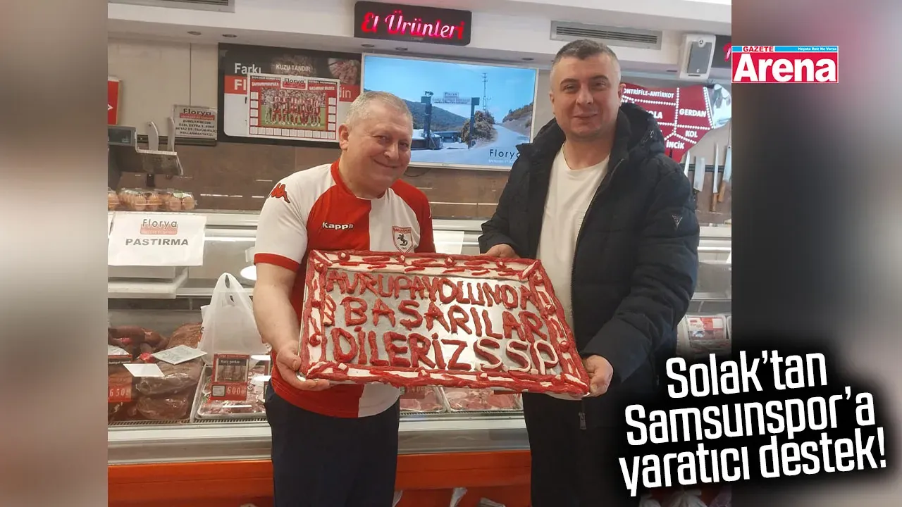 Reeder Samsun’un İlkadım İlçesindeki Florya Et Ürünleri dükkanında kasaplık yapan Mustafa Solak, Samsunspor’a olan sevgisini her fırsatta etle yaptığı çalışmalarla gözler önüne seriyor. Solak, bu kez de et kullanarak ‘Avrupa Yolunda Başarılar Dileriz’ yazdı. Bu yaratıcı destek, taraftarlar arasında büyük takdir topladı. Samsunspor'un bu tür desteklerle daha da güçlenmesi bekleniyor.