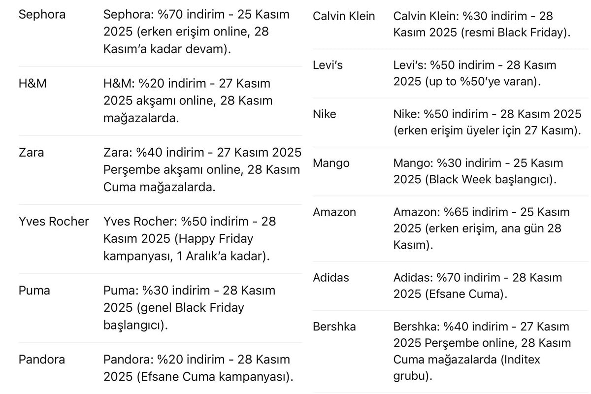 Sosyal medya kullanıcıları, Sephora, H&M, Zara, Yves Rocher, Puma, Adidas, Amazon ve Bershka gibi markaların bu ay içerisinde ürünlerinde yüzde 20 ile yüzde 70 arasında değişen indirimler yapacağını paylaştı.