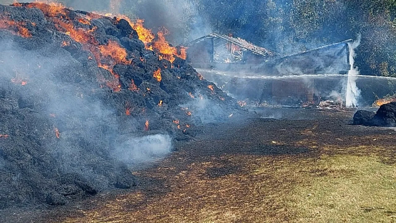 Kastamonu’nun Araç ilçesinde bilinmeyen sebeple çıkan yangında iki adet samanlık ile birlikte 6 bin balya saman ve bir patoz aracı yanarak kül oldu.