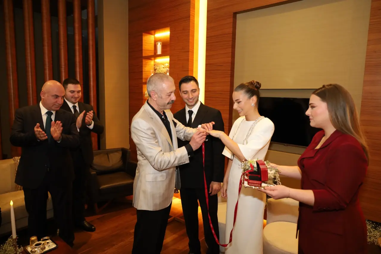 İş İnsanı Sedat Şahin ise nişan yüzüklerini takarken yaptığı konuşmada:
