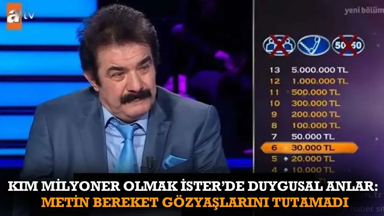 ATV’nin uzun soluklu ve sevilen bilgi yarışması Kim Milyoner Olmak İster, bu hafta da dikkat çeken anlara sahne oldu. Oktay Kaynarca’nın sunuculuğunu üstlendiği programda yarışmacı Metin Bereket, verdiği cevap sonrası gözyaşlarına hakim olamadı.