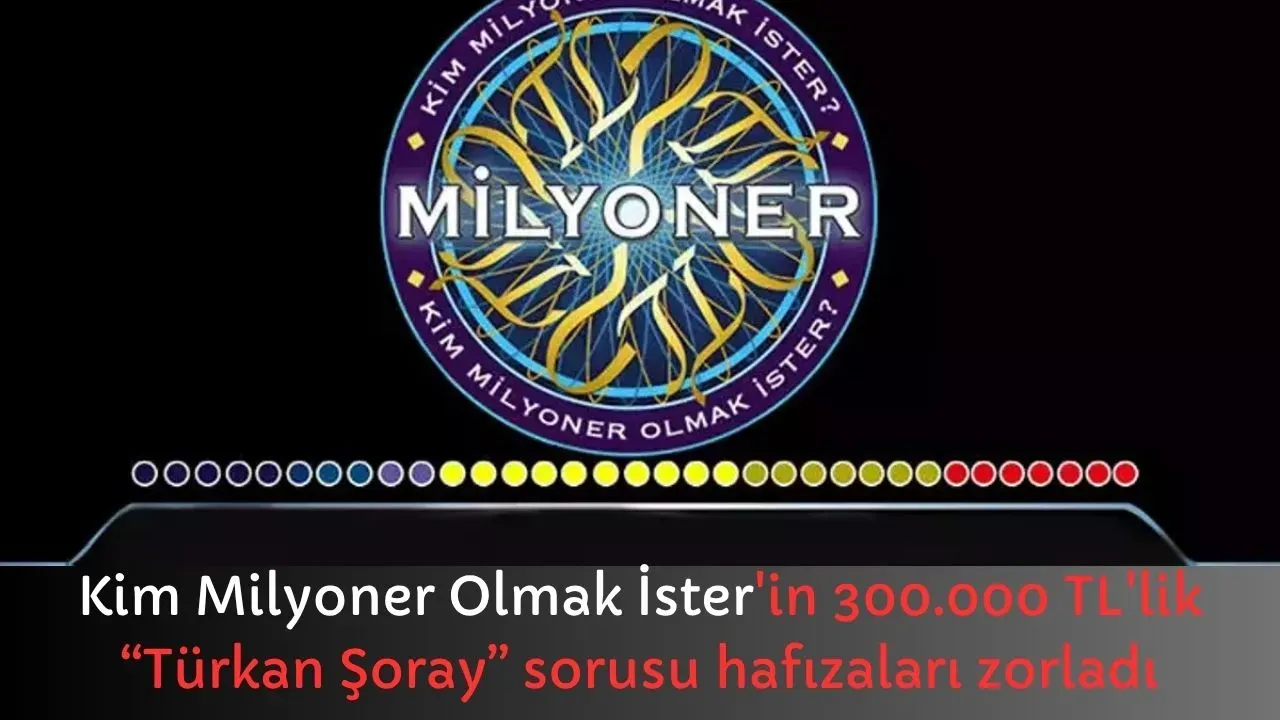 Her hafta evlere konuk olan Kim Milyoner Olmak İster yarışması bu hafta da oldukça heyecan vericiydi. Yarışmacıya yönlendirilen 300 bin TL'lik sorunun Türkan Şoray’a ait olması sosyal medyada ayrı bir başlık olarak yer aldı.