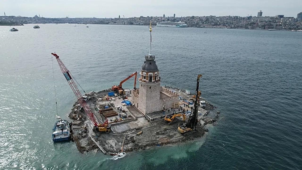 Geçtiğimiz günlerde etrafındaki iskelenin kaldırılması sonucu tamamen ortaya çıkan Kız Kulesi'nin birçok yerinde ve etrafındaki çalışmalarda sona yaklaşıldı. İstanbul’un önemli simgelerinden olan tarihi yapının büründüğü yeni hali görenlerin dikkatini çekiyor. Çevre düzenlemeleri devam eden Kız Kulesi’nin Mayıs ayında açılması bekleniyor. Kız Kulesi’nin son hali dron ile havadan görüntülendi. İHA