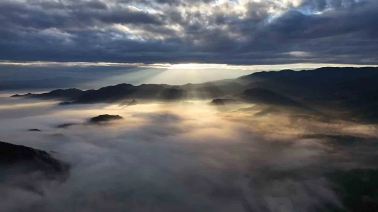 Çorum'da Osmancık ilçesinde dağları ve Kızılırmak nehrini kaplayan sis, kartpostallık görüştüler oluşturdu. Şehri saran sis, havadan görüntülendi.