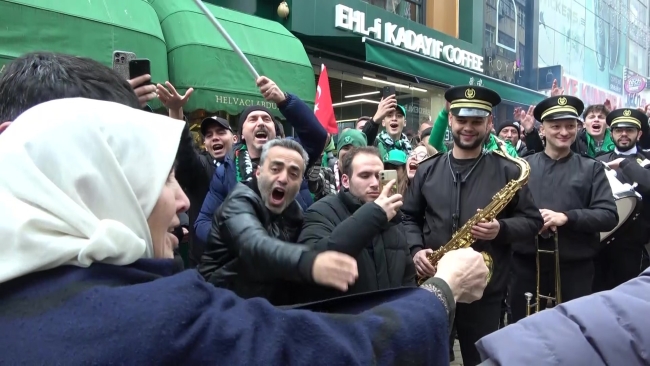İzmit Cumhuriyet Parkı'nda toplanan taraftarlar, kortej oluşturarak Kent Meydanı'na yürüdü. Yaşlı bir teyzenin kortejin ortasında bestelere eşlik attığı anlar ise izleyenleri gülümsetti.