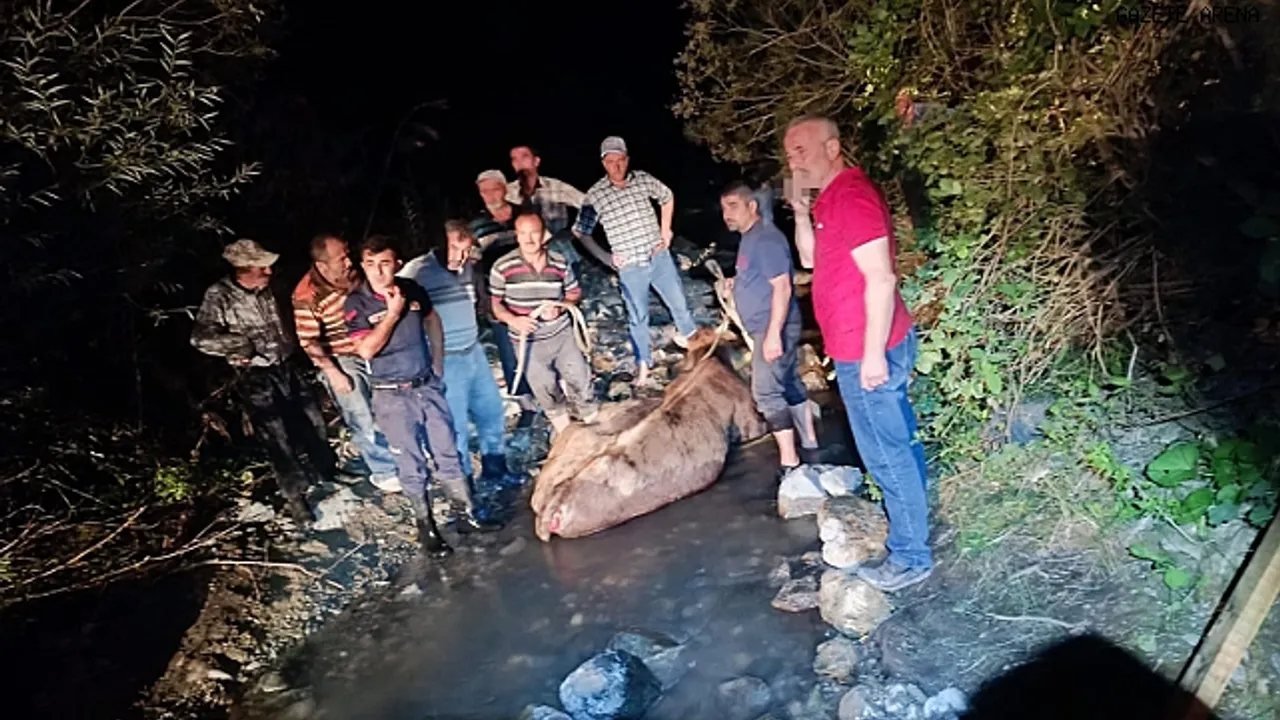Edinilen bilgiye göre, Şükrü Kaya’ya ait inek araziden dönerken ayağının kayması neticesinde köprüden dereye düştü. İneği kurtarmak için çalışan köy sakinleri, çabalarında başarılı olamayınca 112 Acil Çağrı Merkezini arayarak istedi.