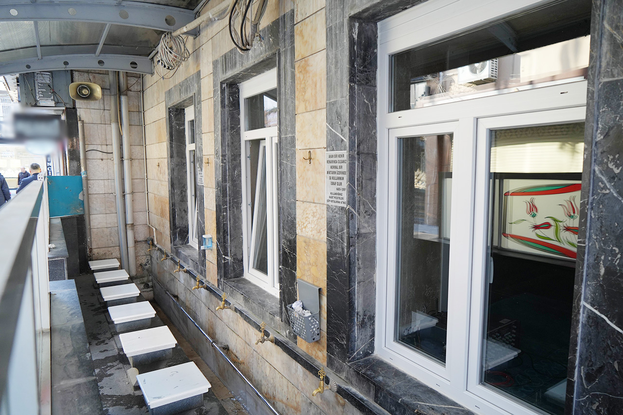 7 asırlık cami, dışardan bakıldığında tarihi bir intiba vermese de ön kapısının üstündeki kitabe, görenlerin dikkatini çekiyor.