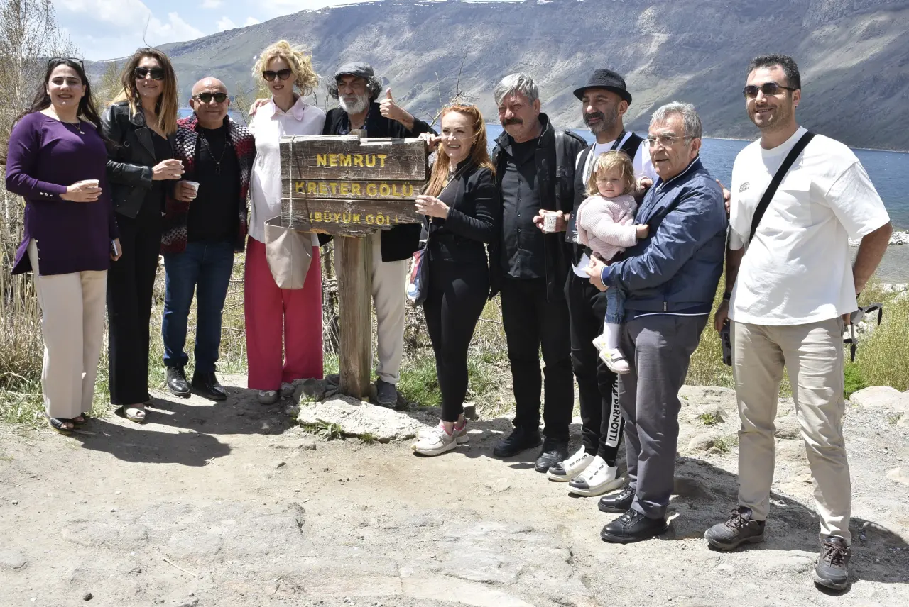 Bitlis Beş Minare Uluslararası Film Festivali’ne katılmak üzere kente gelen oyuncu, yönetmen ve senaristler, festivalin üçüncü gününde Nemrut Krater Gölü ve Ahlat Selçuklu Mezarlığı’nı gezdi. Bitlis’in Ahlat, Güroymak ve Tatvan ilçeleri sınırlarında bulunan Nemrut Krater Gölü’nde doğaya hayran kalan sanatçılar, hatıra fotoğrafları çektirdi. Ardından, dünyanın en büyük Türk İslam mezarlığı olan Ahlat Selçuklu Mezarlığı’na geçen konuklar, bu eşsiz tarihi alanı ilgiyle inceledi.