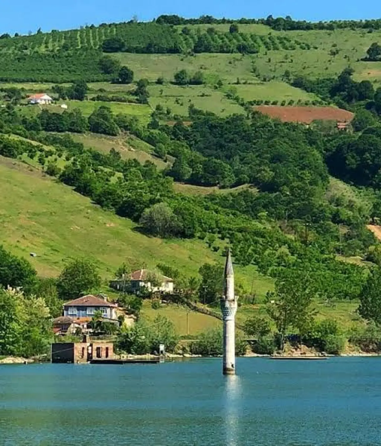 • Samsun – Derbent Barajı (Bafra): 1980’li yıllarda sular altında kalan Boğazkaya Mahallesi’ne ait caminin minaresi hâlâ ayakta ve zaman zaman su yüzeyine çıkıyor.