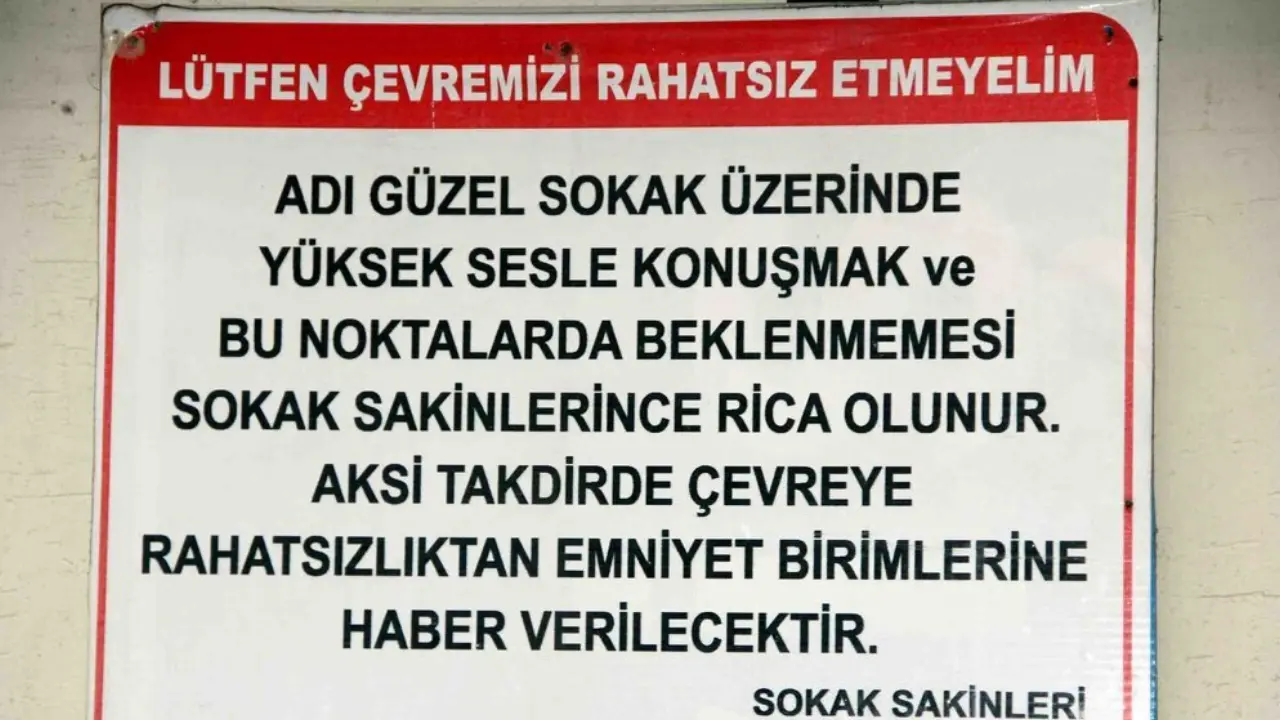 Bu sokakta yüksek sesle konuşmak ve köşe başlarında beklemek yasak – tabela ile belirtilmiş. Özellikle yaşlılar, öğrenciler ve huzurlu ortamı korumak isteyen mahalle sakinleri için uygulanıyor. İlginç bir kamusal düzenleme örneğidir.