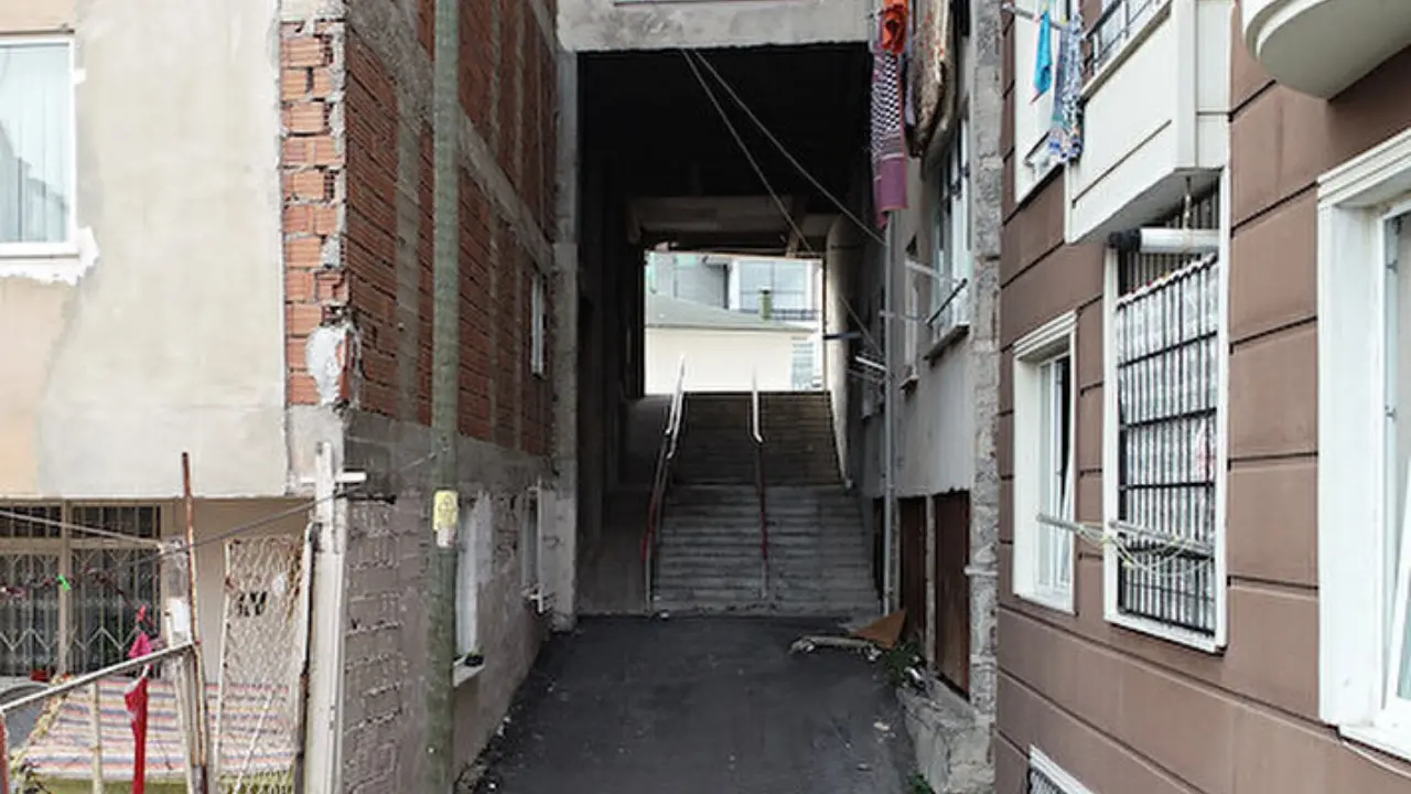 Bir binanın altından geçiyor! 12 yıl önce yapılmış planla cadde üzerine iki bina inşa edilmiş, sonrasında bir binanın altı açılarak yayalara yol verilmiş.