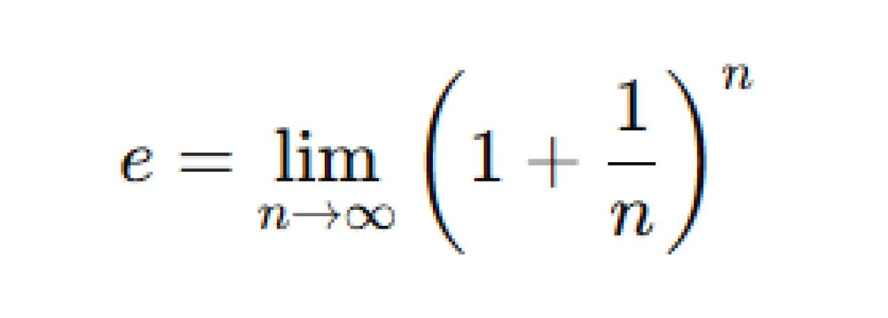 Bu ifade, e'yi sürekli büyüyen bir oran olarak tanımlar. Başka bir ifadeyle, her defasında birim bir artışa sahip bir sayının sınırsız sayıda tekrarından elde edilen limit değerini belirtir.