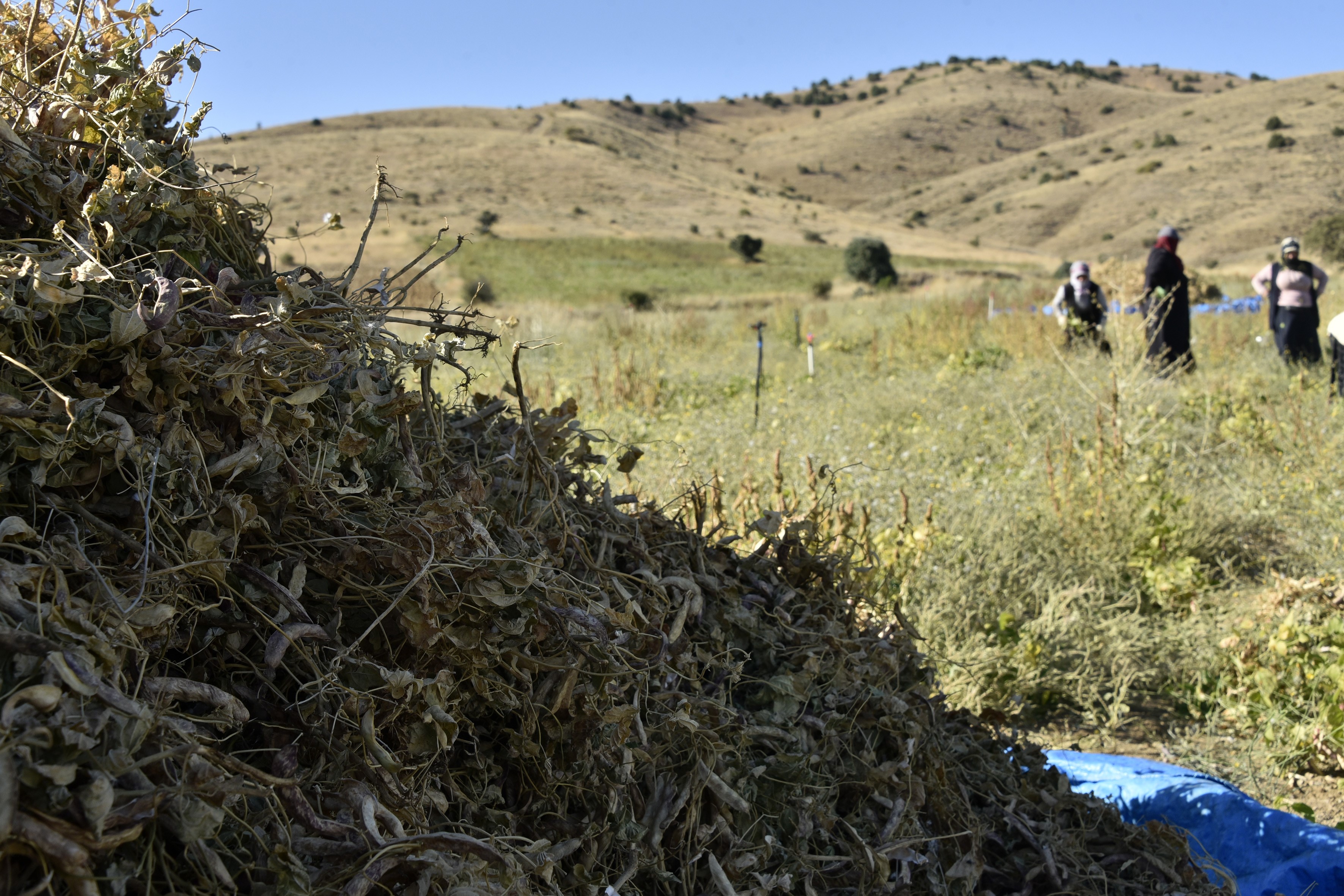 Gümüşhane'nin Yukarı Fırat Havzasında üretilen dünyaca ünlü şeker fasulyesinin Köse ilçesindeki hasadı devam ediyor.
