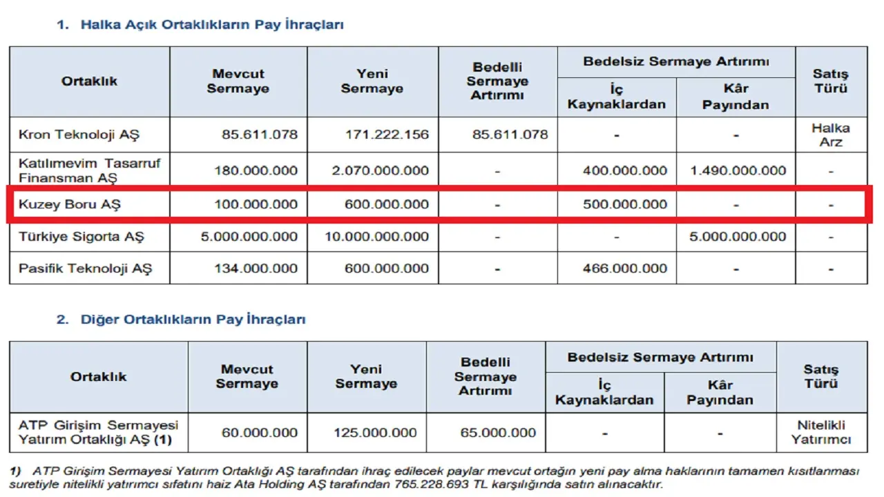 SPK tarafından yayımlanan Mayıs ayının son haftalık bülteninden 5 şirkete sermaye artırımı onayı müjdesi çıktı. Bu şirketlerden biri konumunda bulunan Kuzey Boru A.Ş’nin de yüzde 500 oranındaki bedelsiz sermaye artırımı başvurusu Kurul’dan onay aldı. Yasal prosedürlerin tamamlanmasının akabinde KBORU hisse Borsa İstanbul’da bölünecek ve yatırımcılara yeni ücretsiz lotlar verilecek; işte detaylar…