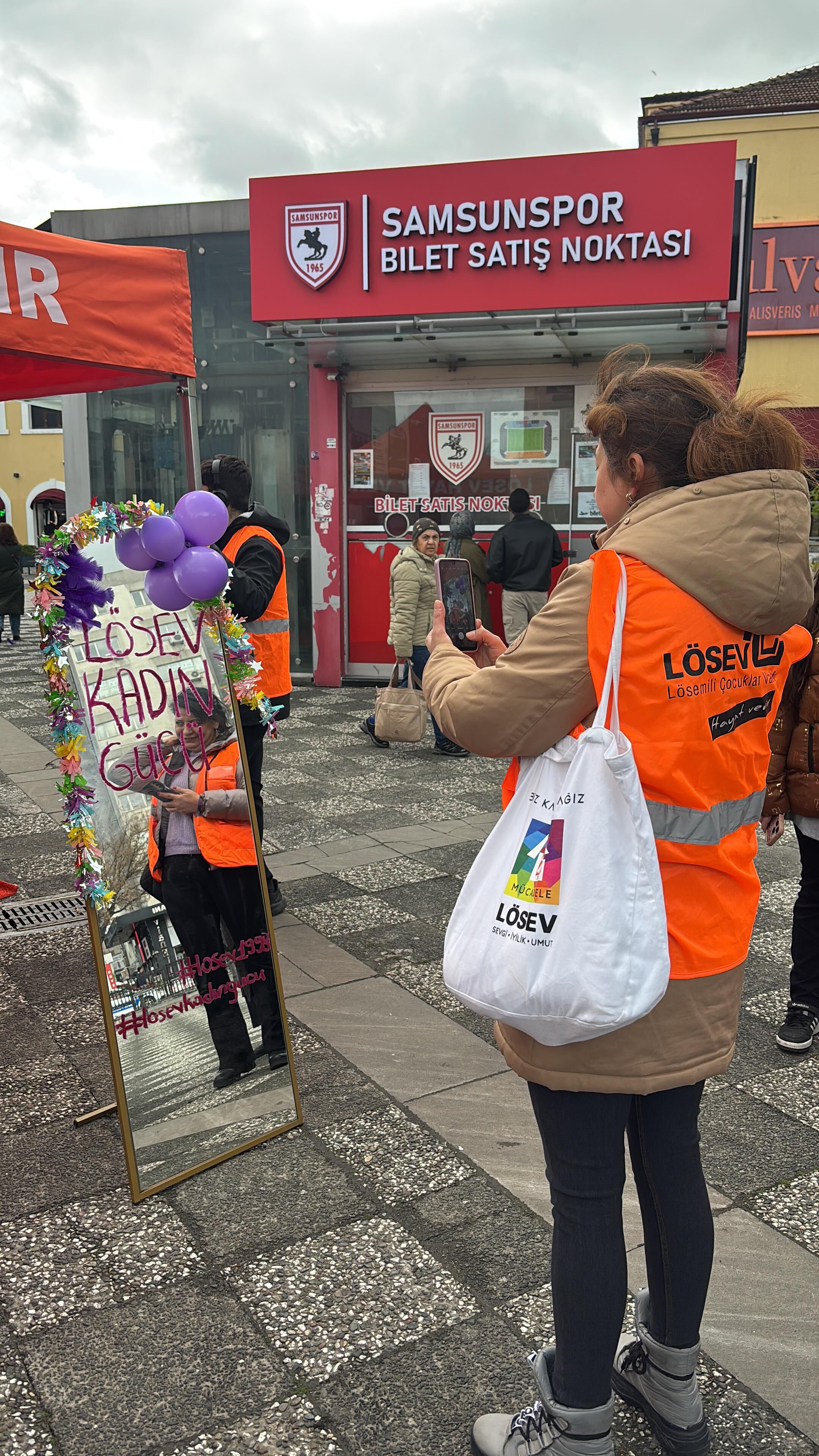 LÖSEV Samsun Ofisi, 8 Mart Dünya Kadınlar Günü kapsamında Bulvar AVM’de farkındalık etkinliği düzenledi. Alışveriş merkezinde kurulan turuncu çadırda gün boyunca kamuoyu bilinçlendirme çalışmaları gerçekleştirildi.