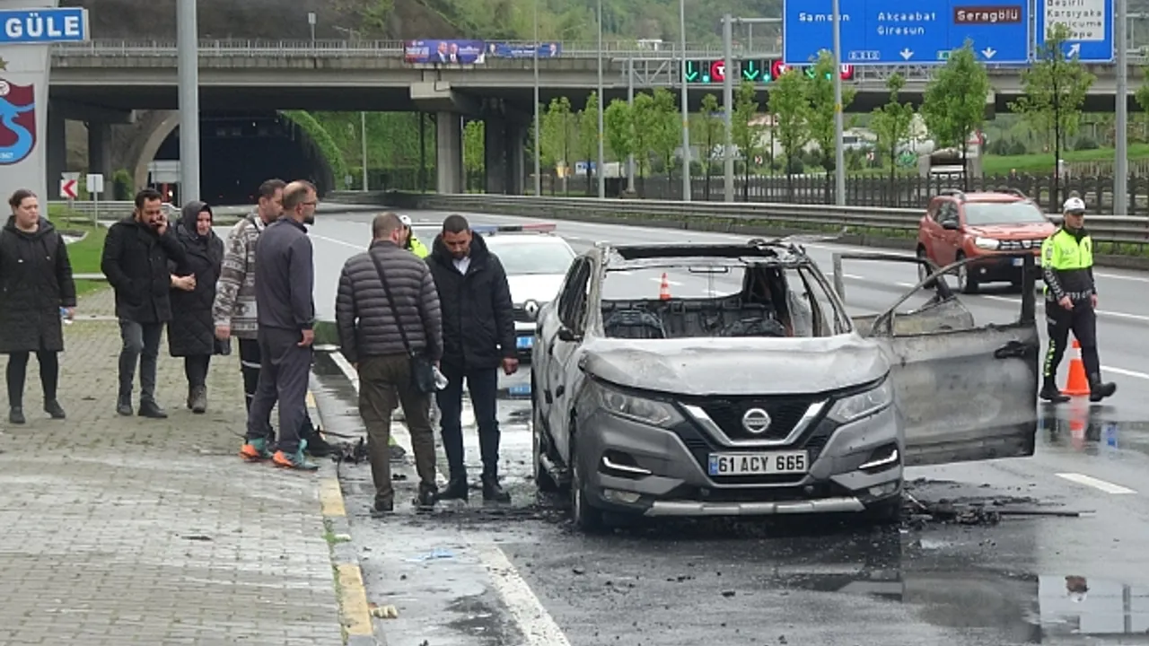 Olay, sabah saatlerinde Ortahisar ilçesinin Akyazı Mahallesi'nde meydana geldi. Edinilen bilgiye göre, Karadeniz Sahil Yolu Trabzon-Rize istikametinde gitmekte olan Esra Kızıler (39) yönetimindeki 61 ACY 665 plakalı Nissan marka cipin çakmaklığında yangın çıktı. Akyazı tünellerinden geçtiği esnada çakmaklıktan çıkan dumanları fark ederek tünel çıkışında aracını durduran kadın sürücü yangın söndürme tüpü ile müdahale etmek istedi. Yangın söndürme tüpünün çalışmaması nedeniyle alevlere müdahale edemeyen sürücüyü gören çevredeki vatandaşlar durumu 112 Acil Çağrı Merkezine bildirdi. İhbar üzerine olay yerine polis, sağlık ve itfaiye ekipleri sevk edilirken, olay yerine gelen itfaiye ekiplerince alev topuna dönen araçtaki yangın kısa sürüde kontrol altına alındı. Yangın sonrası otomobil hurdaya dönerken, kadın sürücü korku dolu anlar yaşadı.