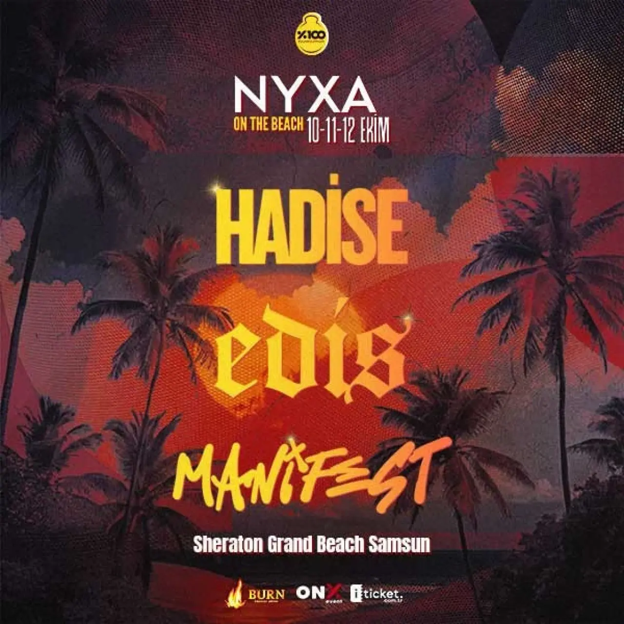 NYXA Beach Festival 2025, 10-12 Ekim tarihleri arasında Sheraton Grand Beach’te gerçekleşecek. Festivalde Hadise, Edis ve Manifest, Samsunlu müzikseverlerle buluşacak. Biletler 11 Ağustos’tan itibaren satışa çıkarken, kombine biletlerde “3 al 2 öde” kampanyası dikkat çekiyor. Festival, sabah erken saatlerden gece yarısına kadar deniz, kum ve müziği bir araya getirecek.