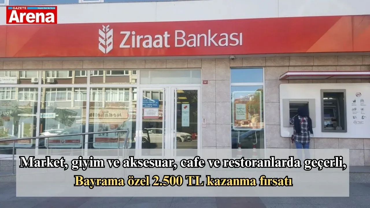 Bankaların bayrama özel kampanyaları gelmeye devam ediyor. Kamu bankaları arasında köklü bir yere sahip olan Ziraat Bankası milyonlarca kullanıcısı için avantajlı teklifini duyurdu. Bayrama özel kampanyası çerçevesinde geçerli 2.500 TL kazanma fırsatı Ziraat müşterilerini bekliyor.