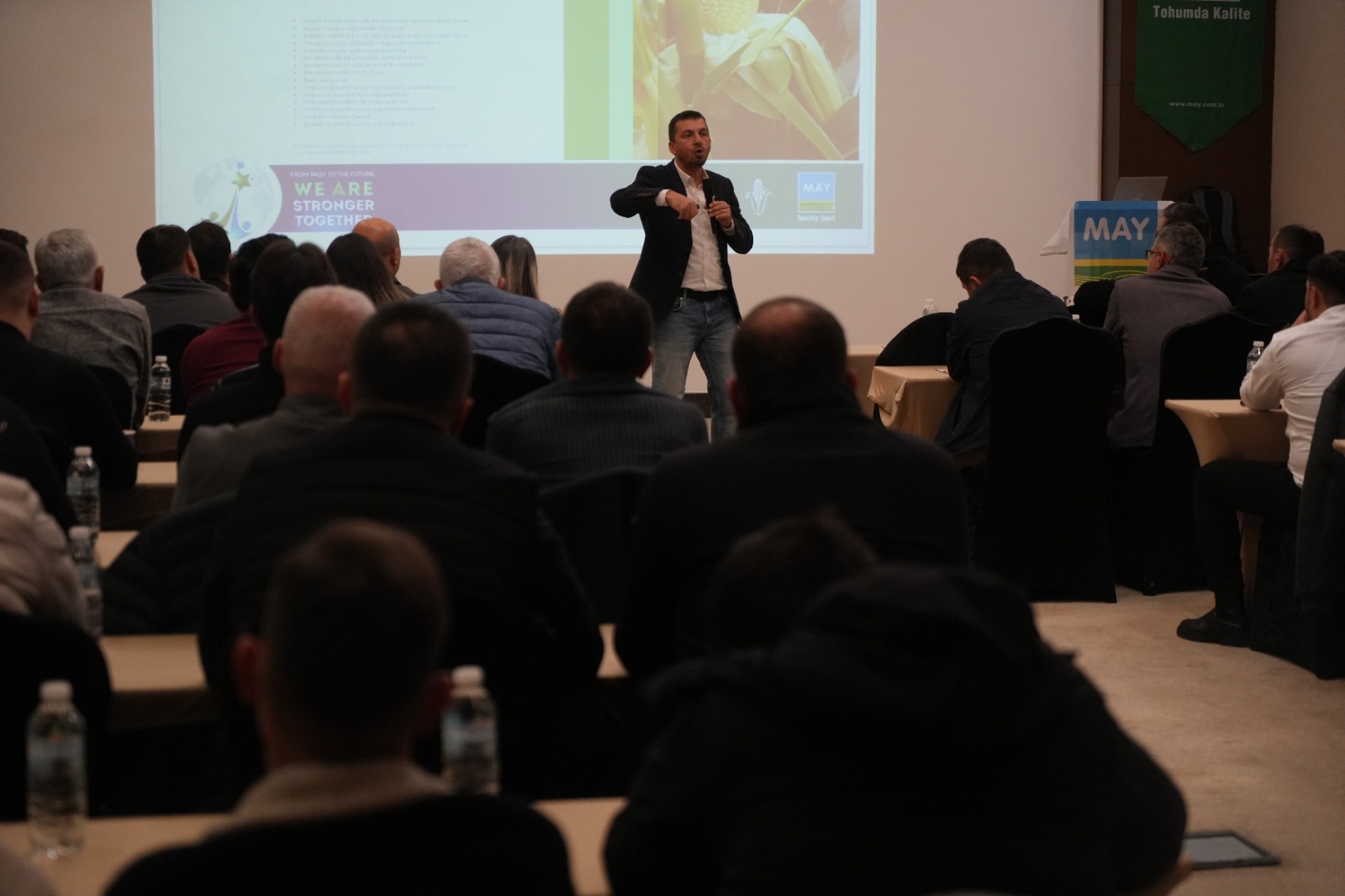 Samsun'da bir otelde düzenlenen programda MAY Tohum yetkilileri, çiftçilerle bir araya gelerek hibrit mısır ve fasulye üretiminde doğru çeşit seçimi, verimlilik ve kaliteyi artırmaya yönelik uygulamalar hakkında bilgi verdi.
