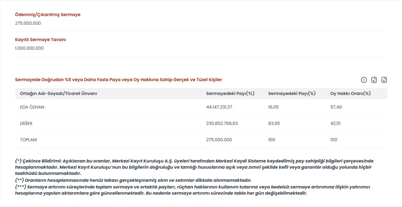 Bedelli sermaye artımı için Sermaye Piyasası Kurulu başta olmak üzere, yasal mercilere başvurusunu yapan firma, SPK’dan onay alamadı. Böylece, firmanın 275 milyon liralık ödenmiş sermayesini artırma ihtimali de en azından 2025 yılı için sona erdi.