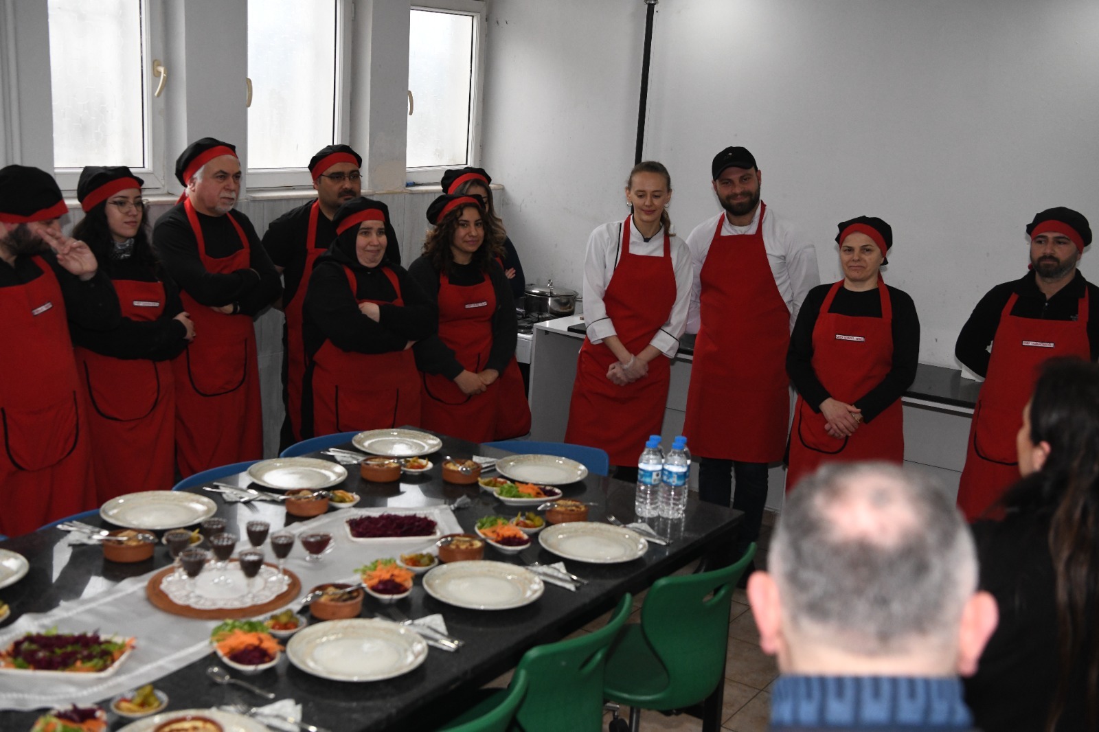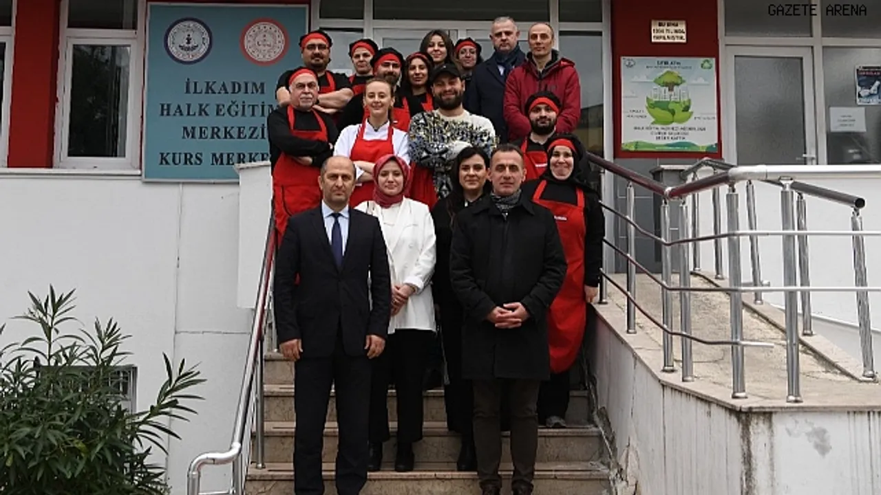 Samsun Büyükşehir Belediyesi vatandaşları her alanda destekleyen eğitim çalışmalarına aralıksız devam ediyor. Bu kapsamda Sosyal Hizmetler Dairesi Başkanlığı, Kadın Aile ve Toplum Hizmetleri Şube Müdürlüğü’nün yaptığı çalışmayla İlçe Halk Eğitim Merkezleri iş birliğiyle açılan meslek edindirme kursları sürüyor. Son olarak açılan Aşçı Yardımcılığı ve Türk Mutfağı iki Meslek Edindirme Kursu’na 39 kursiyer katıldı. Kursiyerlerin hazırladığı Samsun’un en önemli lezzetlerinden biri olan kaz tiridi, tadım yapan Büyükşehir Belediyesi Kültür ve Sosyal İşler Daire Başkanı İdris Akdin ile Kadın Aile ve Toplum Hizmetleri Şube Müdürü Bekir Söylemez, Yaşlı ve Engelli Hizmetleri Şube Müdürü Emrah Baş’dan da tam not aldı.