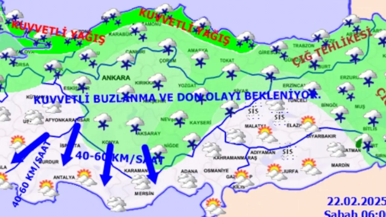 Meteoroloji Genel Müdürlüğünden alınan tahminlere göre yağışların; Karadeniz kıyıları ile Kırklareli kıyıları, İstanbul, Yalova, Kocaeli ve Sakarya çevrelerinde yer yer kuvvetli olması bekleniyor. Kuzey, iç ve doğu kesimlerde kuvvetli olmak üzere Ülkemiz genelinde buzlanma ve don ile birlikte pus ve yer yer sis hadisesinin görüleceği tahmin ediliyor. Doğu Karadeniz’in iç kesimlerinin yüksekleri ile Doğu Anadolu’nun yüksek ve dik yamaçlarında çığ tehlikesi bulunuyor.