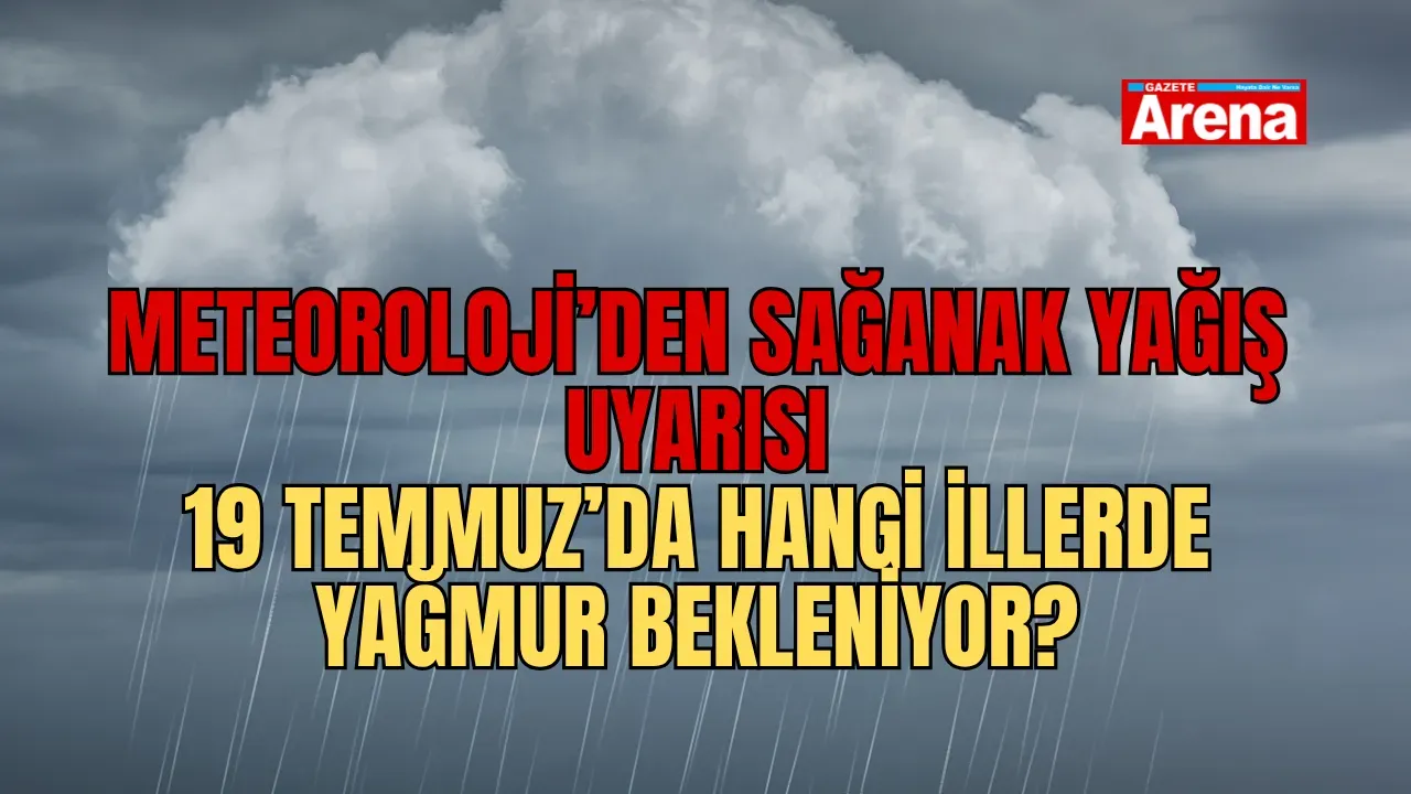 Meteorolojik verilere göre, 19 Temmuz Cumartesi günü sağanak yağışın etkili olacağı iller şunlar:Ankara: Başkentte akşam saatlerinde yerel olarak kuvvetli sağanak ve gök gürültülü yağış bekleniyor. Ani sel ve su baskını riskine karşı dikkatli olunmalı.