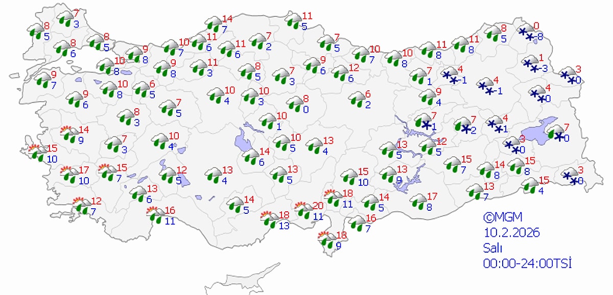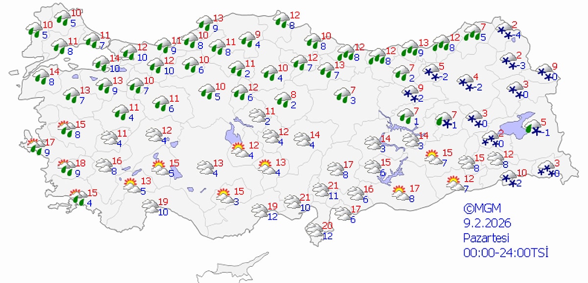 9 ŞUBAT PAZARTESİ HAVA DURUMU