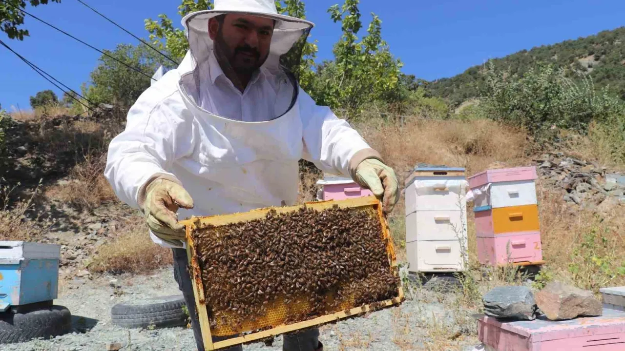 Kavurucu sıcakların arıcılık faaliyetlerini olumsuz etkilediğini belirten Sefa Öztürk, " Hobi olarak yapıyoruz. Arıcılığa ilk 2020 yılında başladık. Sürekli kendisinden bal aldığım bir ağabeyim vardı. Her sene eşe dosta arkadaşlara yüklü miktarda bal alıyordum, çünkü ailecek balı çok seviyoruz. Bir gün kendisine yine bal istediğimi söylediğim de bana, sana bir kovan vereyim yanıma da gel git bu işi öğren kendi balını kendin yap. Öğrenirsin yaparsın bu işi deyince heves ettik. Ondan iki tane kovan aldım, 2020 yılında bir kovanla başladım, şu an 10 tane kovanım var. Kendi balımızı üretiyoruz. Ticari bir faaliyetimiz yok ama bu işi hobi olarak yapıyoruz. Şimdi biz arılarımızı doğal olarak baktığımız, beslediğimiz için fazla bir yüklü miktarda bir hasat alım söz konusu olmuyor. Mesela kovan başı 15 kilo diyebiliriz. 10 tane kovanım var 150 kilo, eğer bu işi doğal yollardan yapmasak ek gıdalarla takviyelerle yapmış olsak miktar ikiye katlar ama biz bundan yana değiliz" dedi.